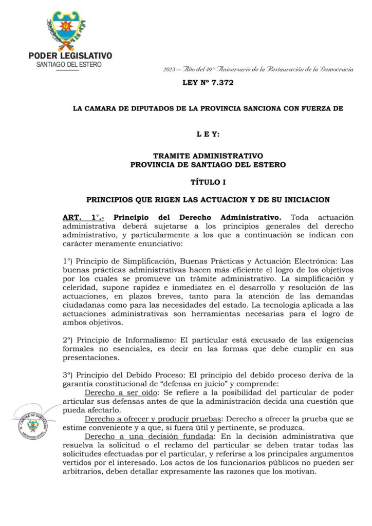 ART. 1°.- Principio del Derecho Administrativo. Toda actuación